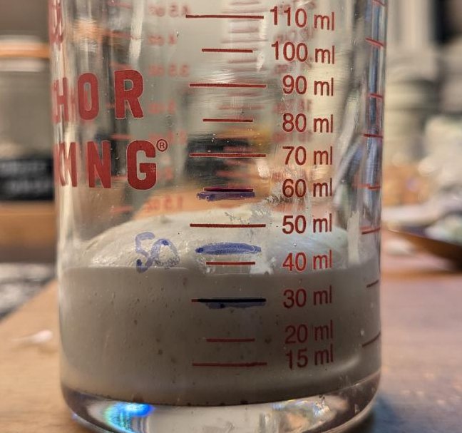 Both these characteristics make it more difficult to judge when it is fully fermented and when it is fully proved, especially when left to prove in the fridge..