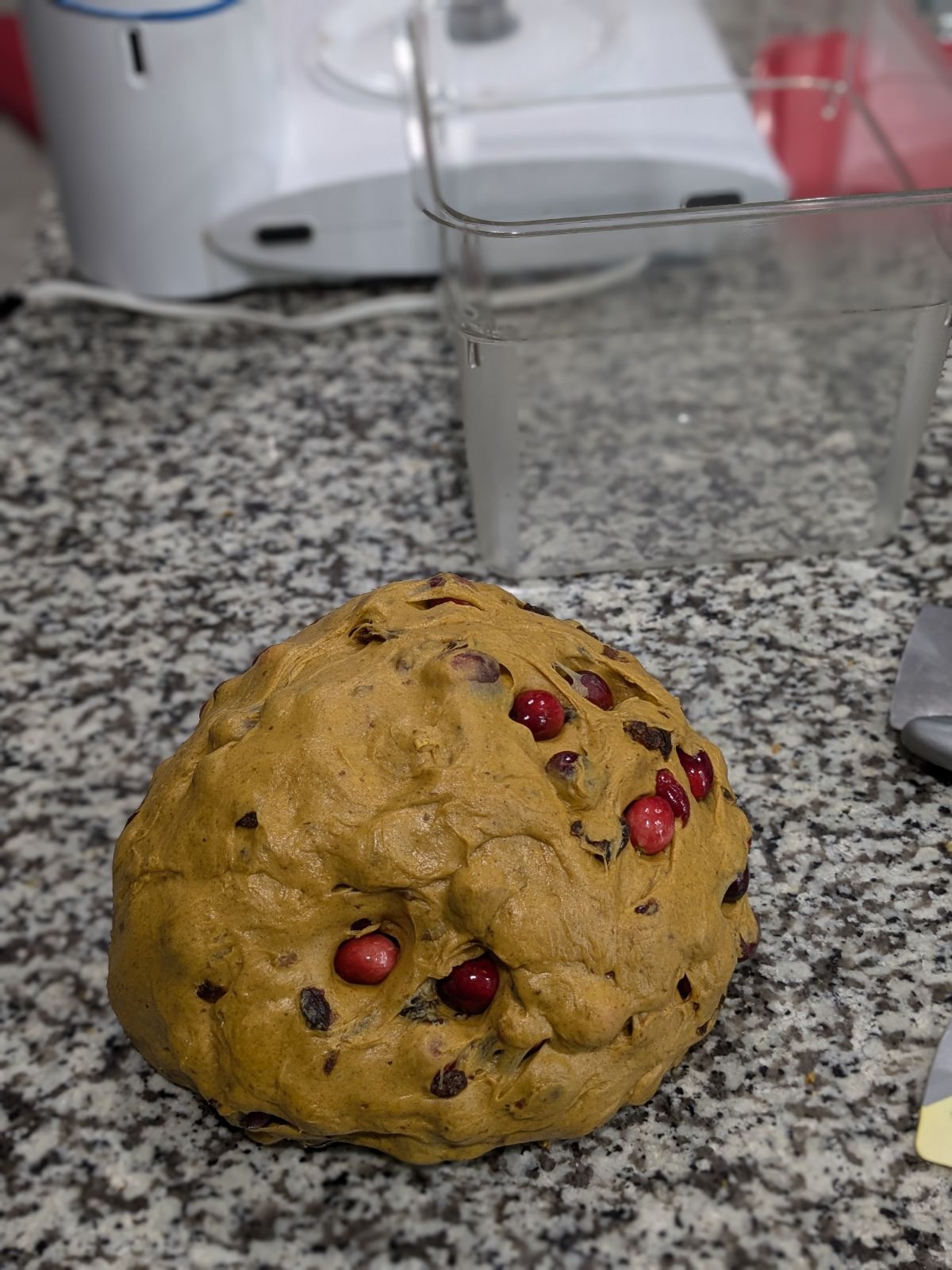I finally pushed myself to make my proprietary fall, yeasted cranberry raisin pumpkin bread.