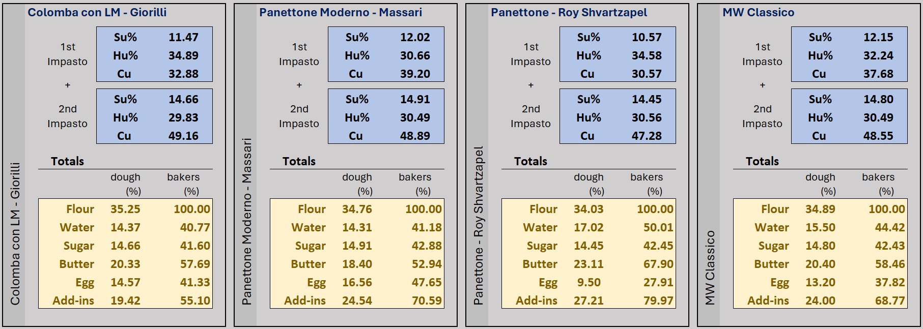 It is very interesting, when you cross-compare recipes by some of the panettone masters, that in many instances they are alike, down to the gram. I used to analyze these, to determine the validity/originality of various panettone recipes presented in courses/classes. In two instances, I found that the recipes were identical to Roy's, with only the batch scaling changed. In one case, the only change was a 50% increase in water, an interesting finding. I found that recipe to be rather volatile, and hard to scale up.