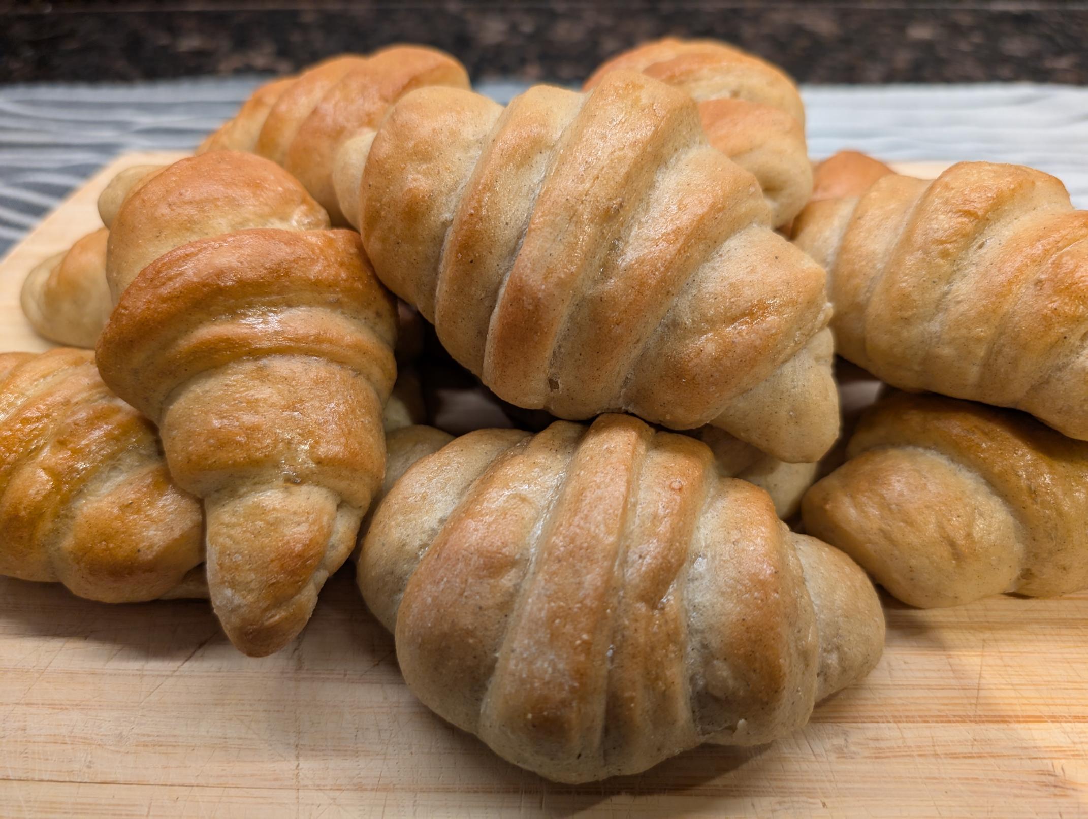 Traditionally, the shape of Cremehorn's resemble a croissant and have a pastry cream filling.