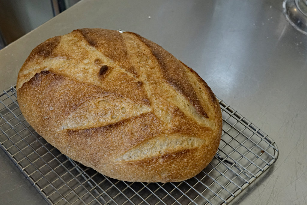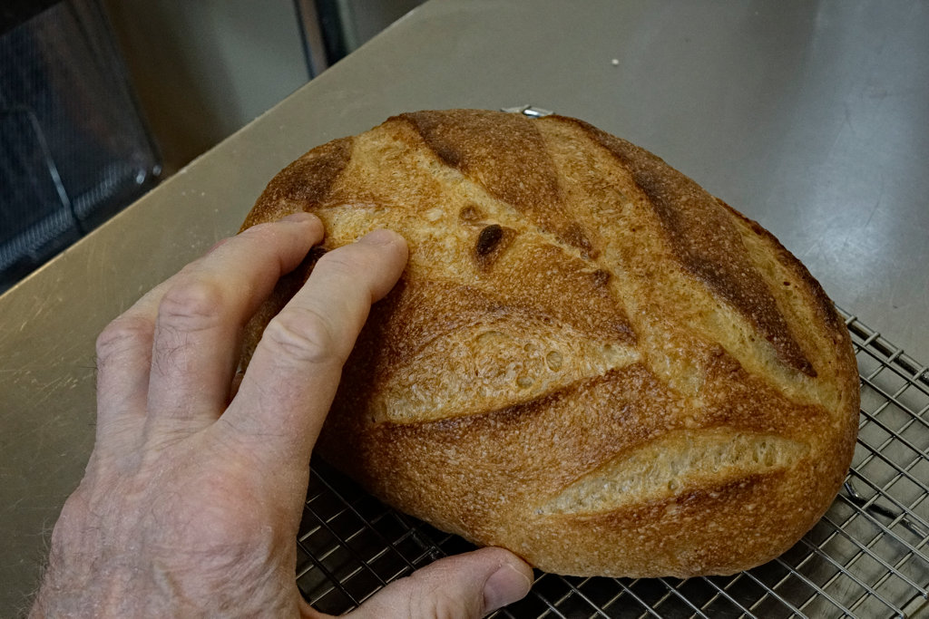 Cover the mix and let it sit for 30 minutes. Then knead or otherwise work the dough until you feel the strength beginning to build. I really like slap-and-folds (aka French folds) with this dough and did 300 for the pictured loaf. Cover and wait 45 minutes and then give the dough a stretch-and-fold (S&F). This dough has a lot of strength (due mainly to the bread flour and the kneading), and perhaps only one or two more S&F will be warranted. Let the dough sit a while during the bulk fermentation and be patient. I used my Brod & Taylor proofing box given the chilliness of our kitchen, and even then several hours passed.