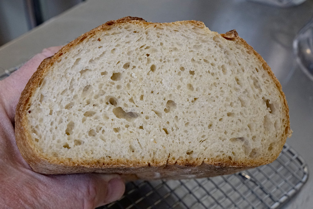 The bake occurred at 450F and lasted 46 minutes. The crust is nicely chewy and the crumb is very soft.
