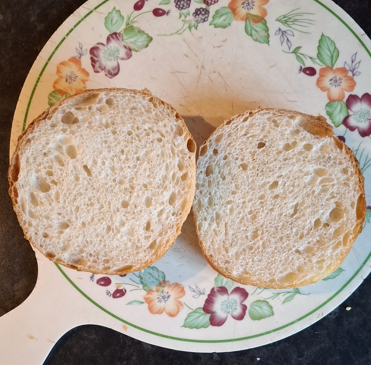 Immediately after mixing, dough was cold bulked in the fridge overnight. The following day I left it to warm up in a warm place until nicely puffy.