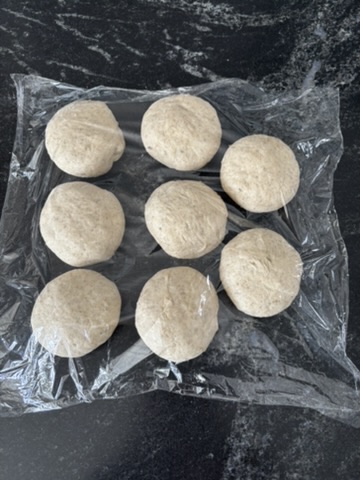 While each flatbread was on the griddle, I rolled out and docked the next one.