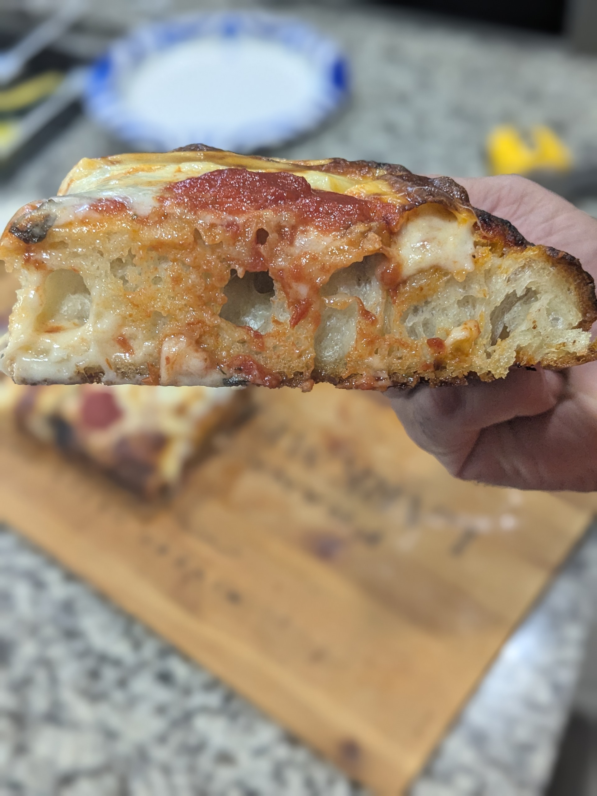 Would you share your formula and procedure? I have multiple pizza books and have been meaning to try a Sicilian and Detroit style. Yours is telling me it's time to take a break from my diet and dive in. I have to take my OONI out of the garage and start making pizza again.