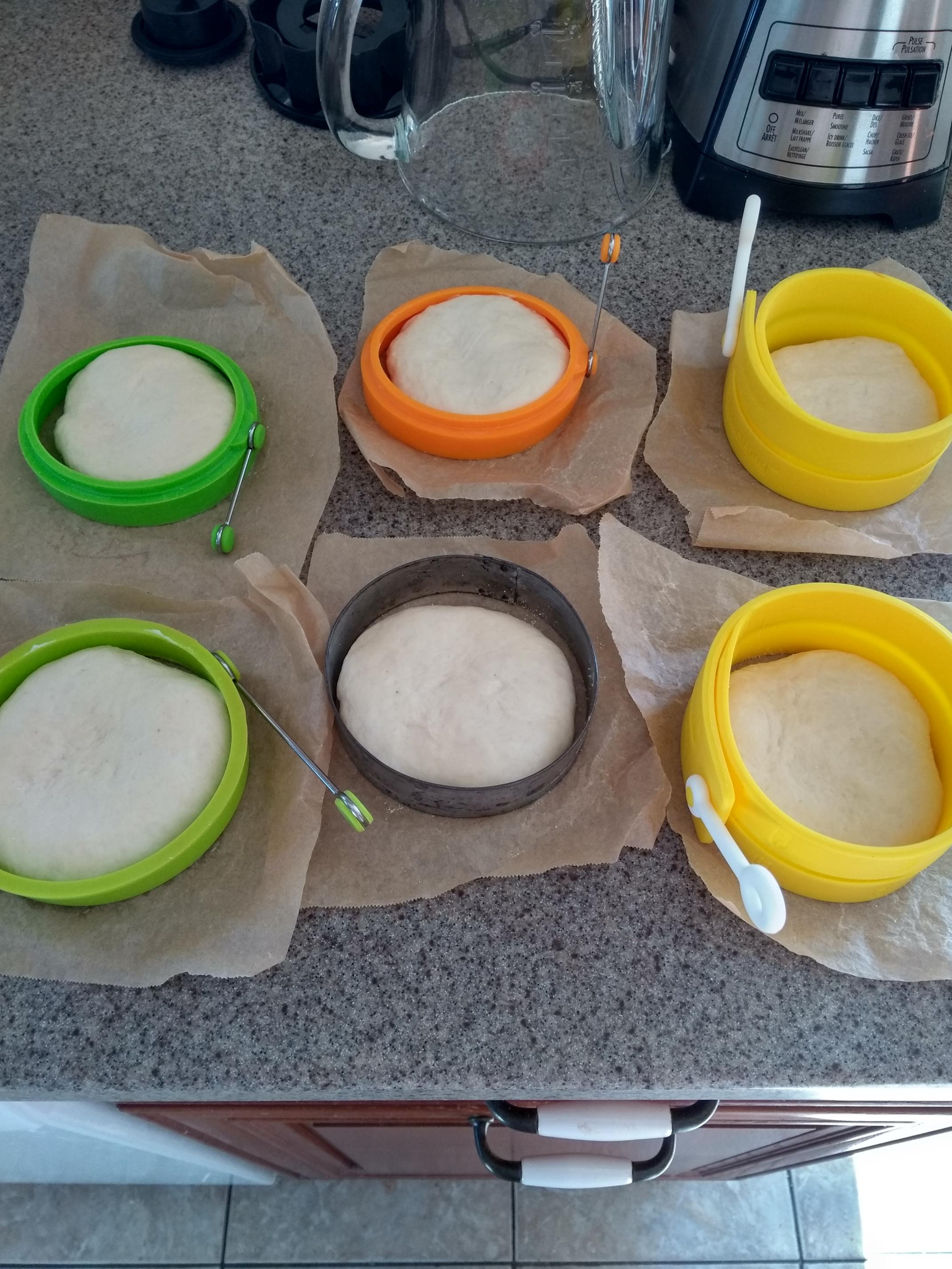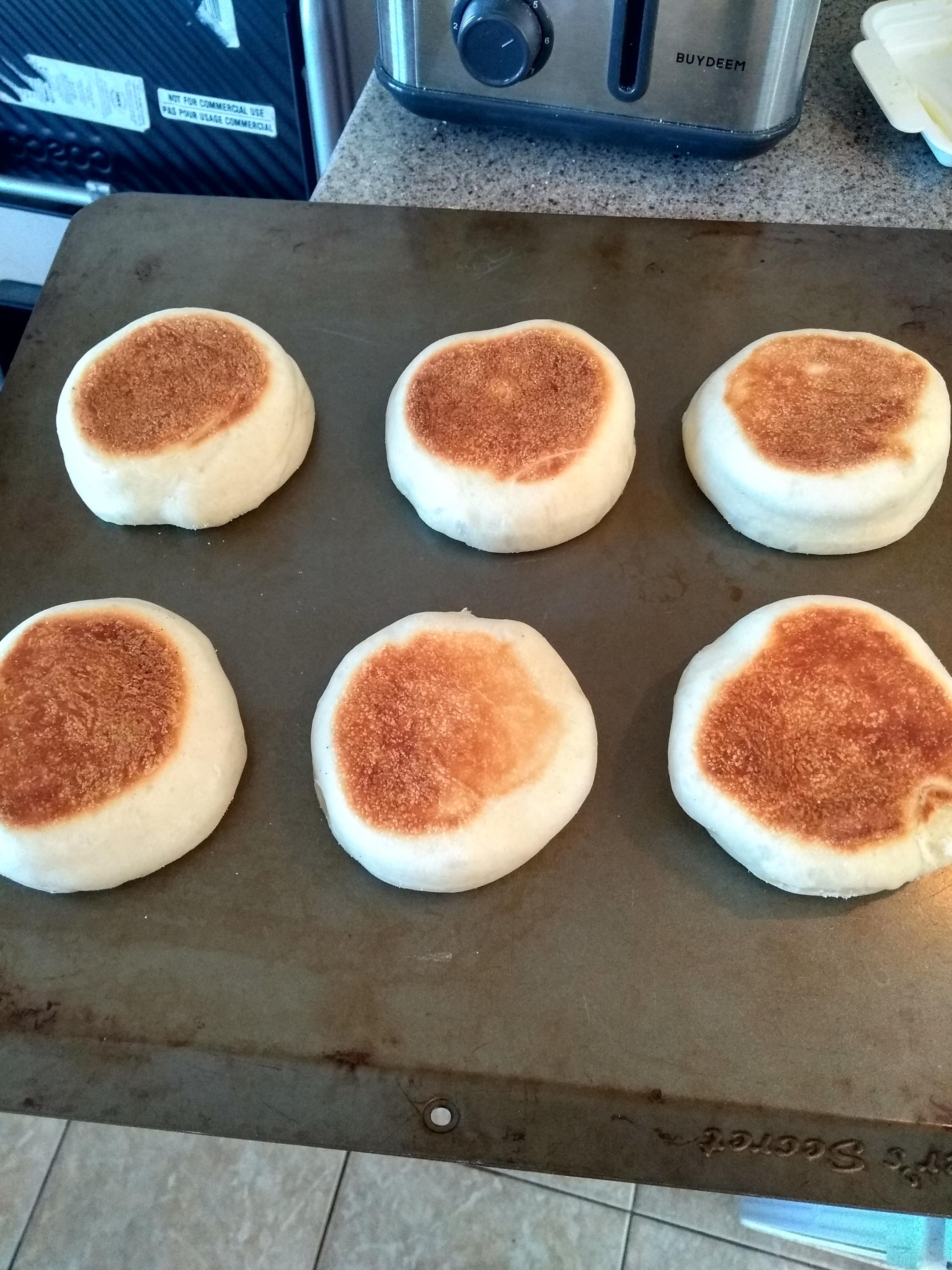 This recipe uses either yeast or starter, has a poolish, and the dough ferments overnight. I've used it many times and it's a good recipe from The Kitchn. Cooked in a ~325° electric frying pan, with lid, for 6 min per side.