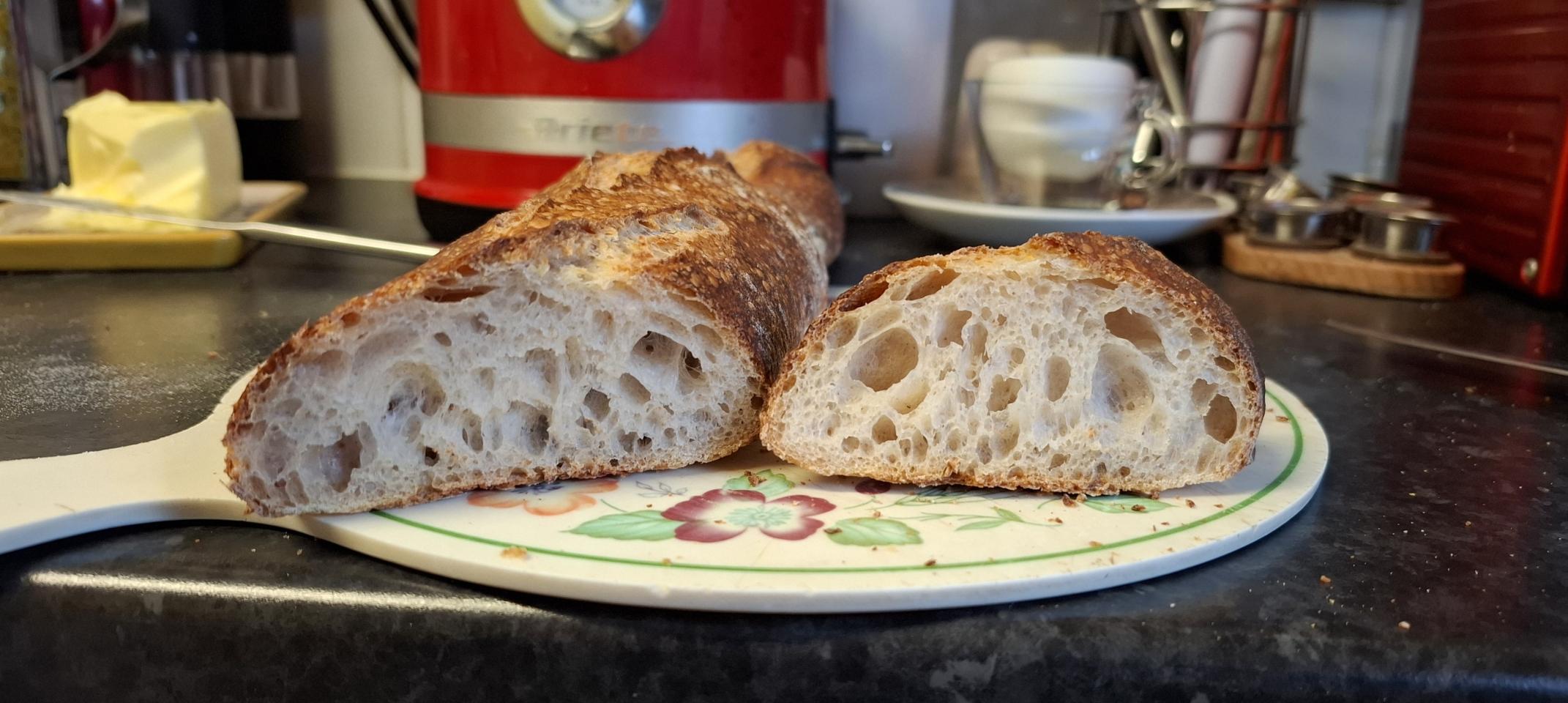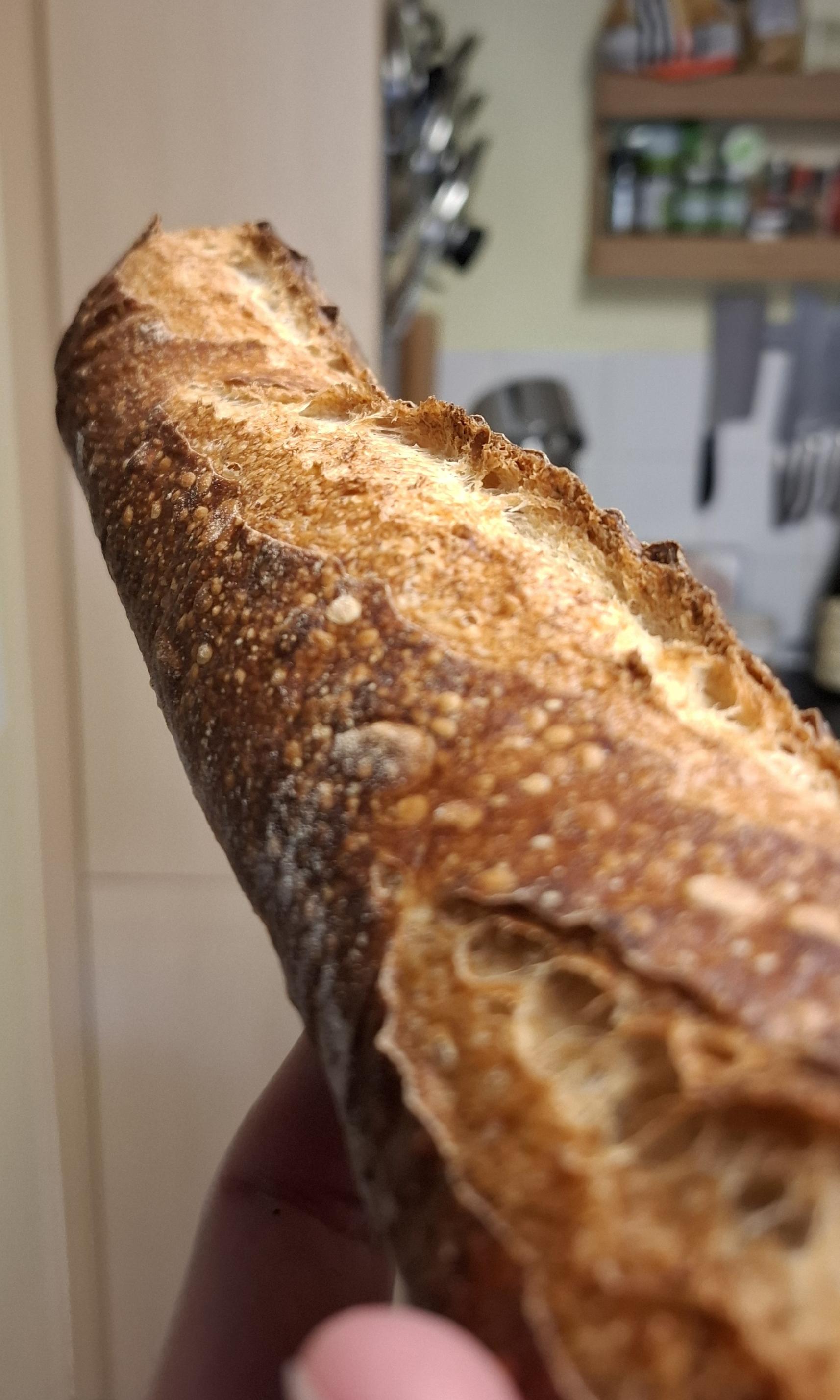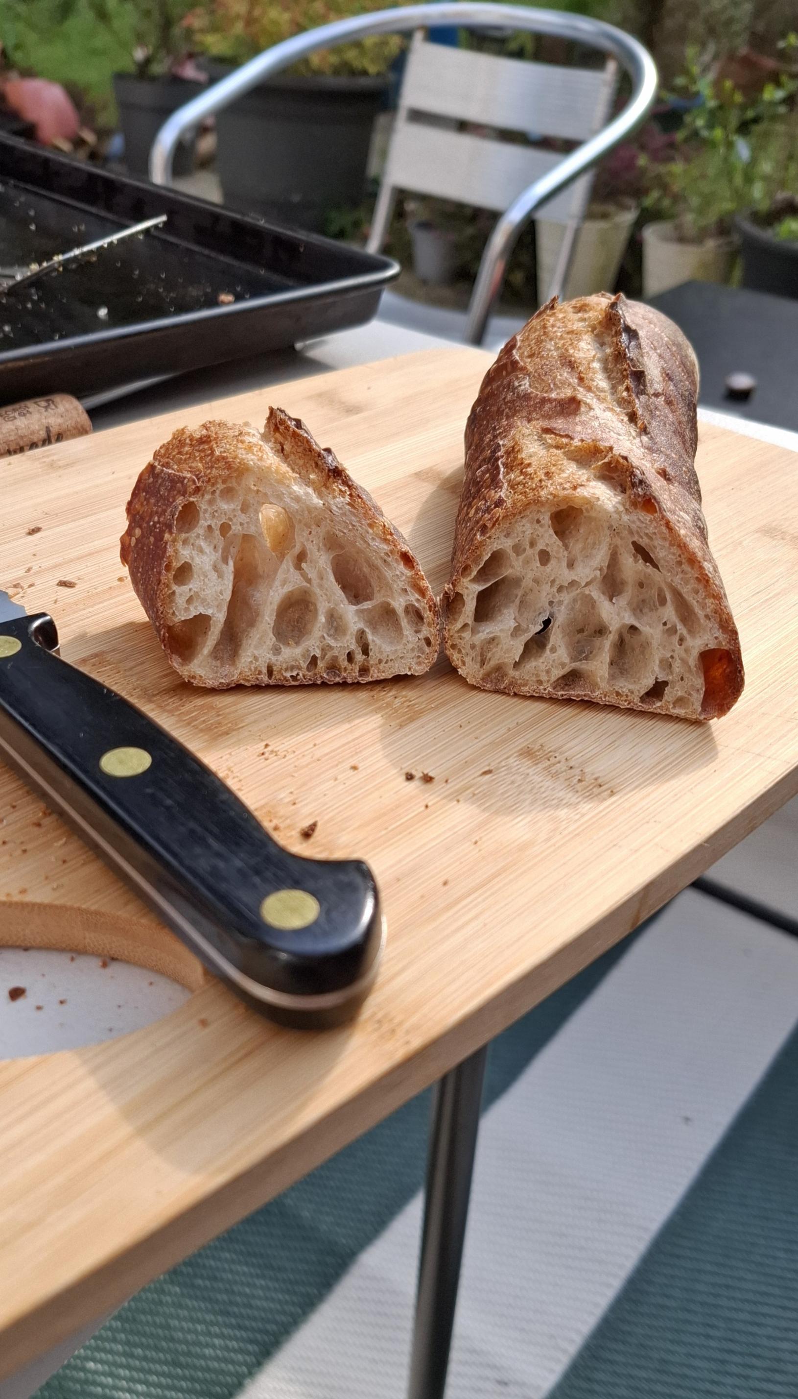 Verdict: Crispy crust, soft and yielding crumb, wheaty flavour with a hint of sour and subtle sweetness. A great success with regard to taste. Room for improvement on aesthetics.