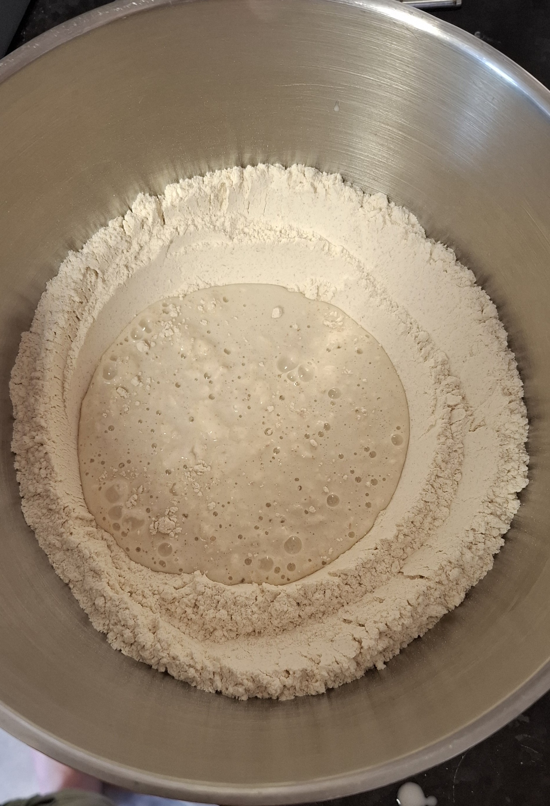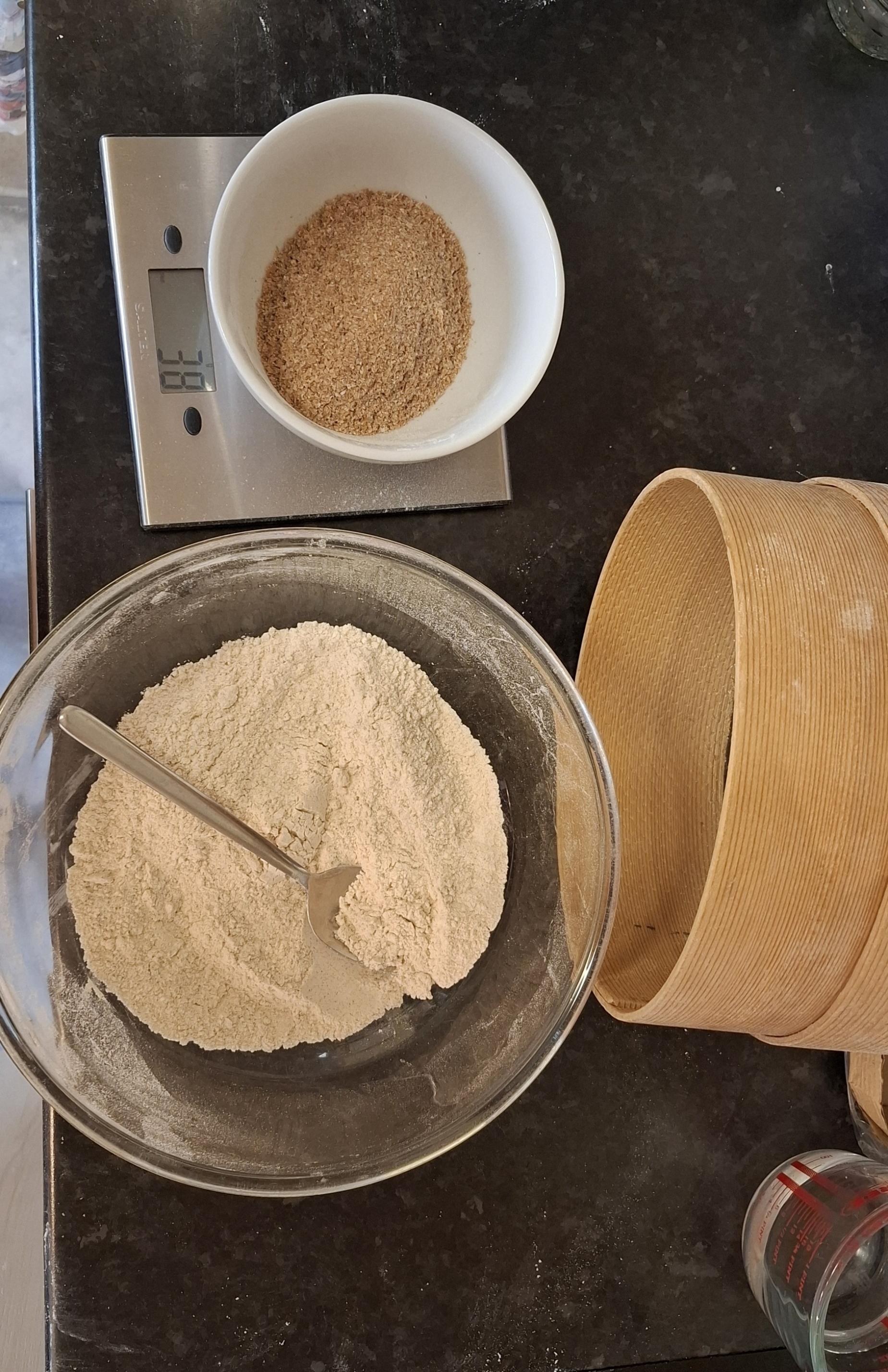 * Flour for the main dough was a blend to approximate the ash level of T65. 380g Tipo 00 (W380) and 120g home sifted stoneground wholemeal at 85% extraction.
