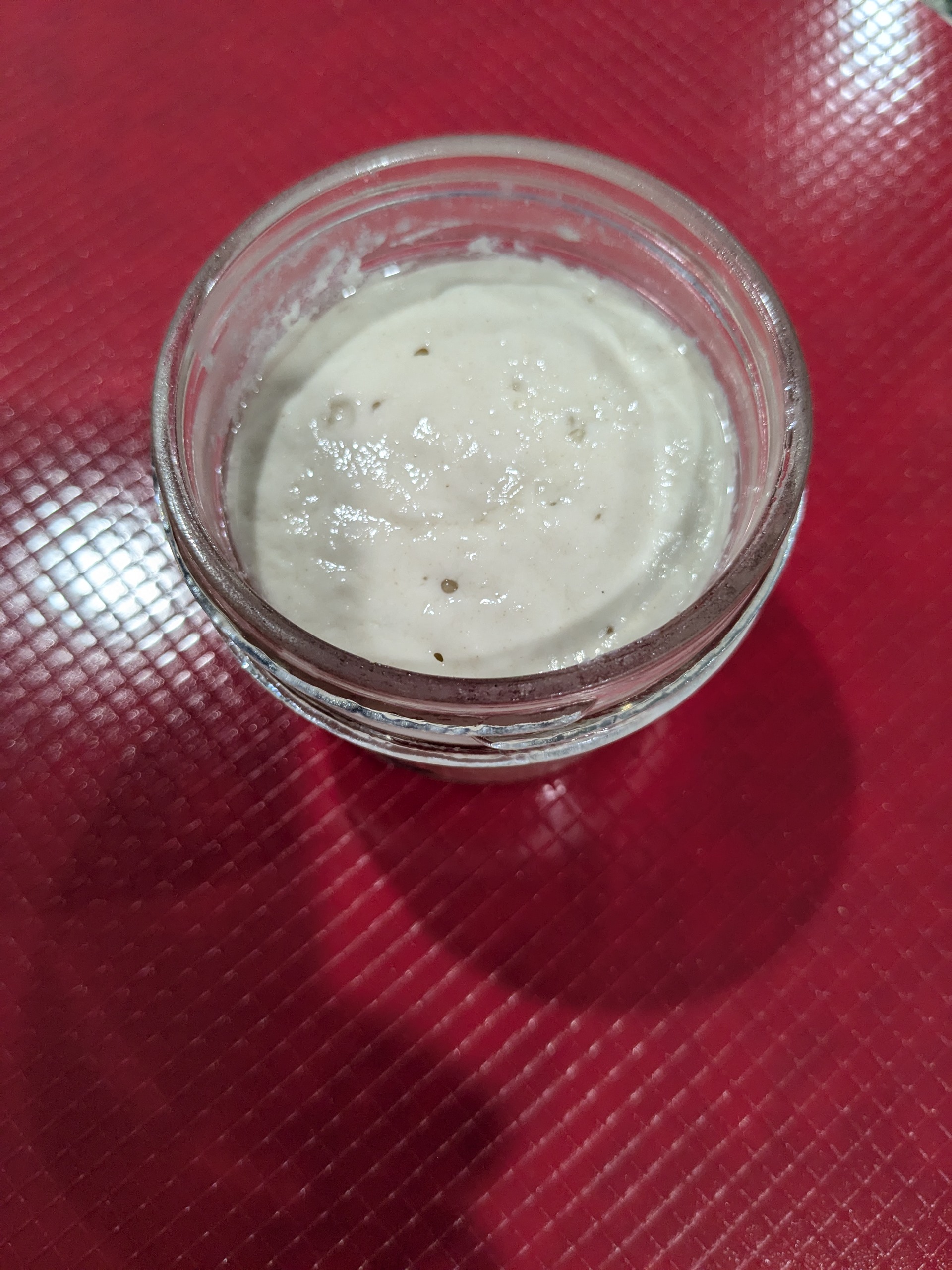 Pictured above is a ripe rye sour, made with the refreshed ( once) mother. For all intents and purposes, the sour is 100% rye at just a smidge under 100% hydration. The sour fermented for 24 hrs at 76° F. The resulting ripe sourdough was very pungent. The alcohol aroma was strangely pleasing, intoxicating even.