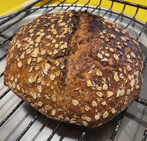 I read about Tony's Brotgewürz rye/wheat loaves & Ian's Onion Caraway Rye -- so, in a bout of cross-polinated insanity 🤣, I baked something you might categorize as halfway between the two.