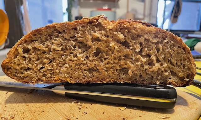 All considered that is a great bake Rob. At just over 50% between the rye and spelt it was always going to be challenging to get it tall loaf without the help of a pan. I think you did great.