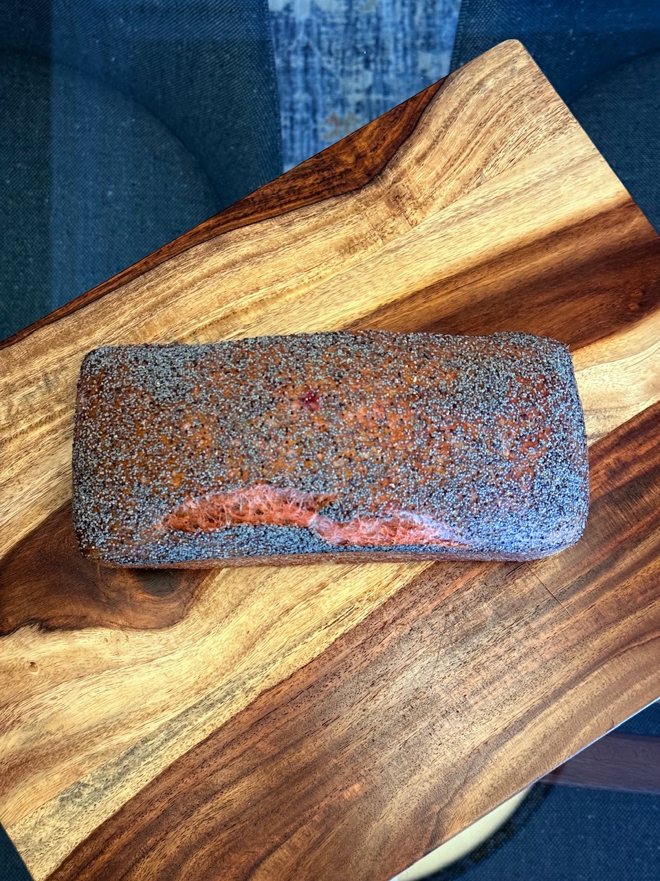 Shape the dough into a batard and place in buttered Pullman pan. Optional, sprinkle poppyseeds on the bottom and sides of the pullman pan.