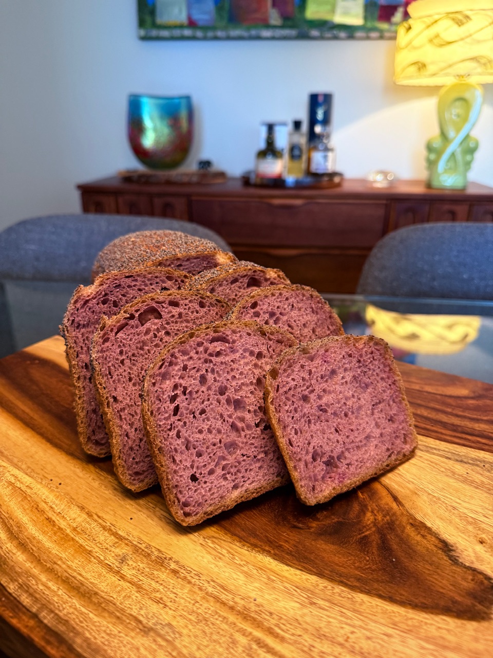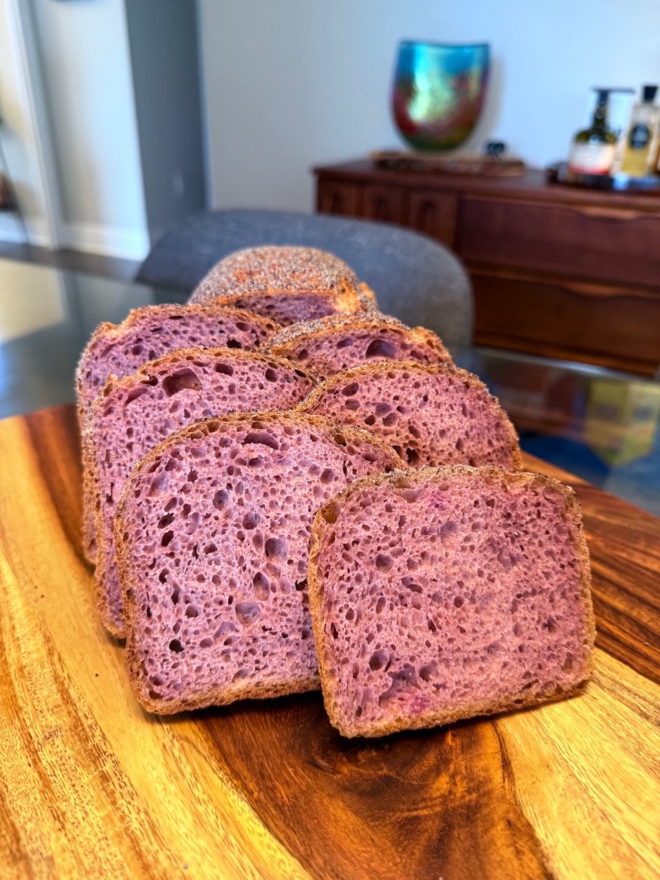 Lovely loaf Benny. The purple hued crumb is vividly expressive and inviting. A great way to dial-up the pan loaf run!