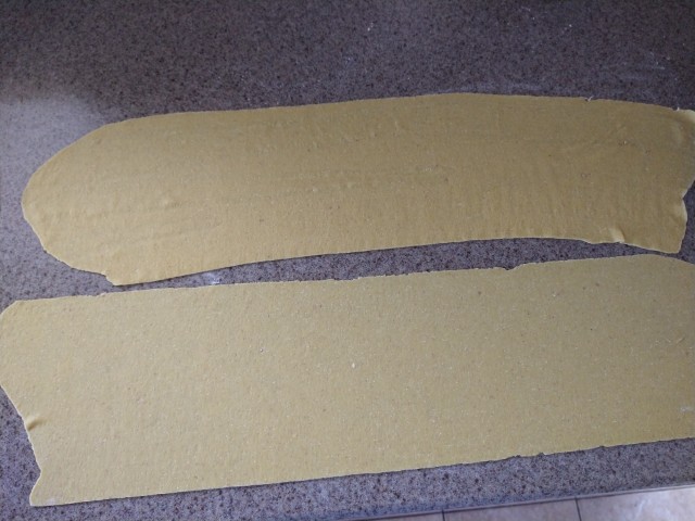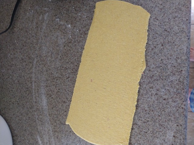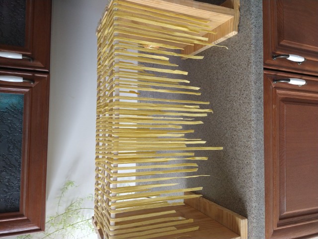 Lamination took much longer than normal to get a smooth dough. I wouldn't say it was silky by any means, but I went ahead. The final noodle, cooked for 4 min, was tender but not lacking in some chew. The real test would be to have regular noodles at the same time, to compare. Only cooked two noodles in case they turned out like an old shoe, but have no qualms now about using the rest.
