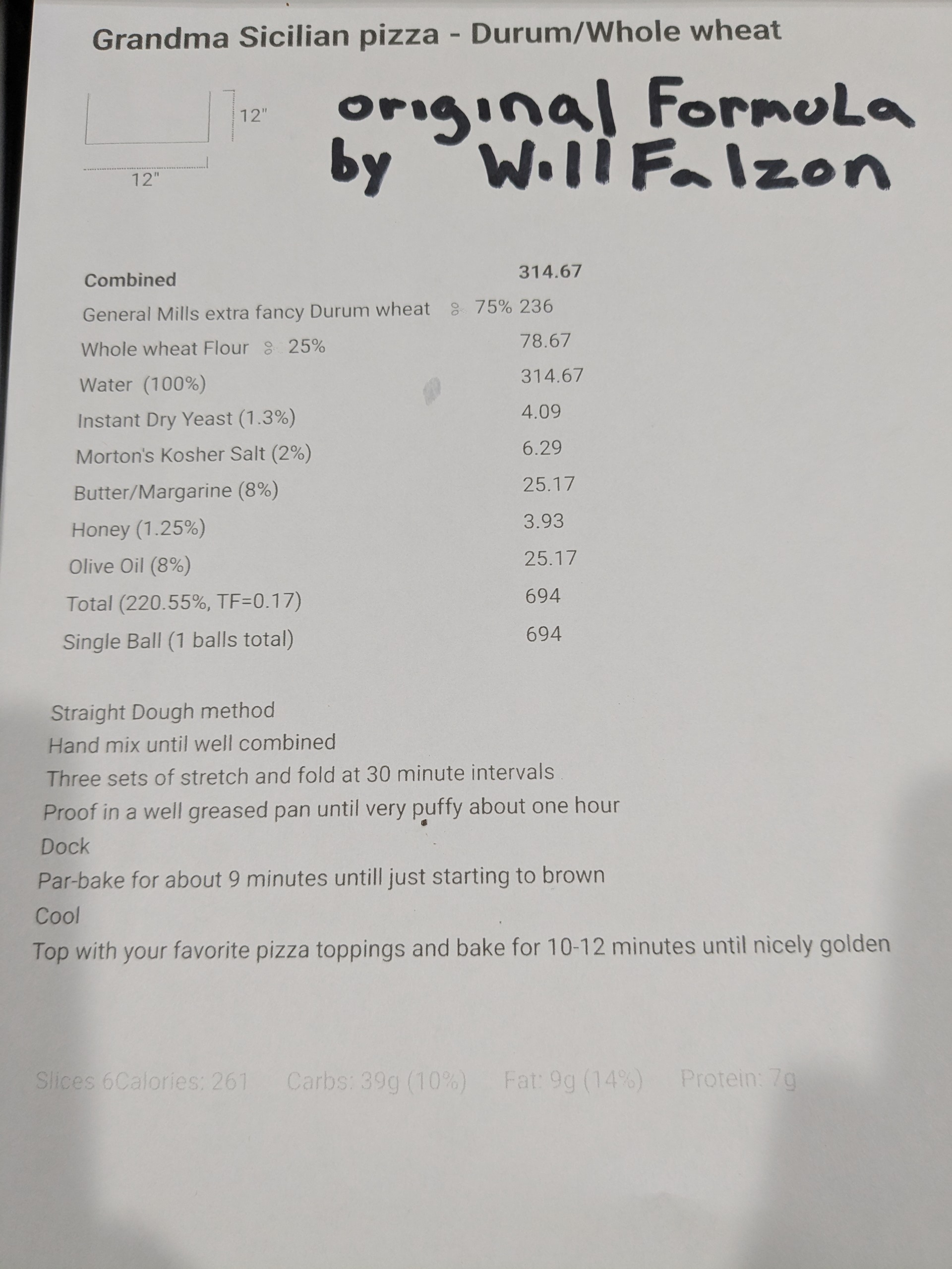 Well, I finally pulled the trigger on one of Walters 12 X12 rolled steel pans. I thought I would celebrate by working up a new formula! The untested formula is attached. If the stars line up I will season and do a par-bake tomorrow! Results to follow.