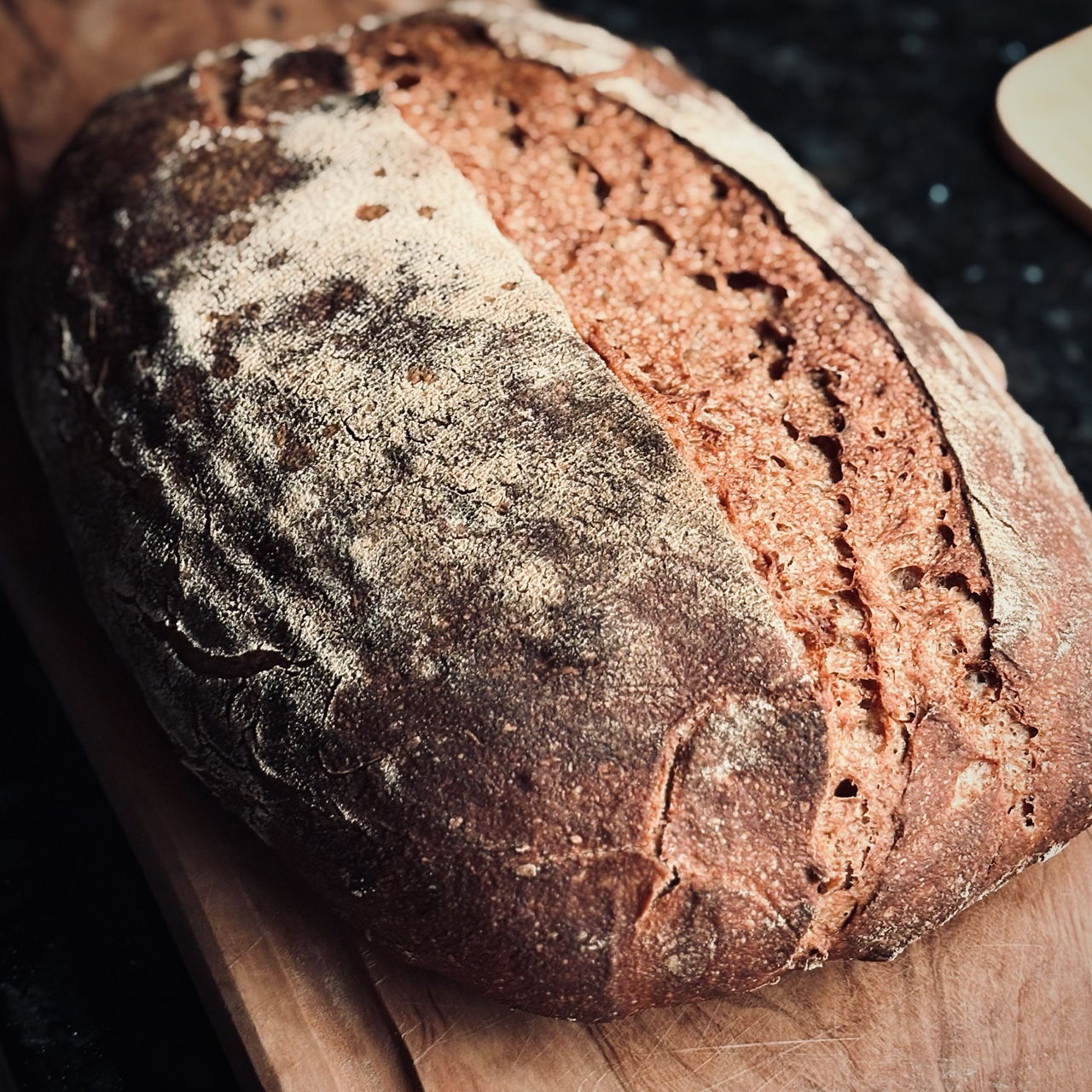 I'm very pleased with the fermentation. Not sure, but maybe next time I can get a bit bigger alveoli and thinner walls between the alveoli. Not really an easy task with 50% whole rye.