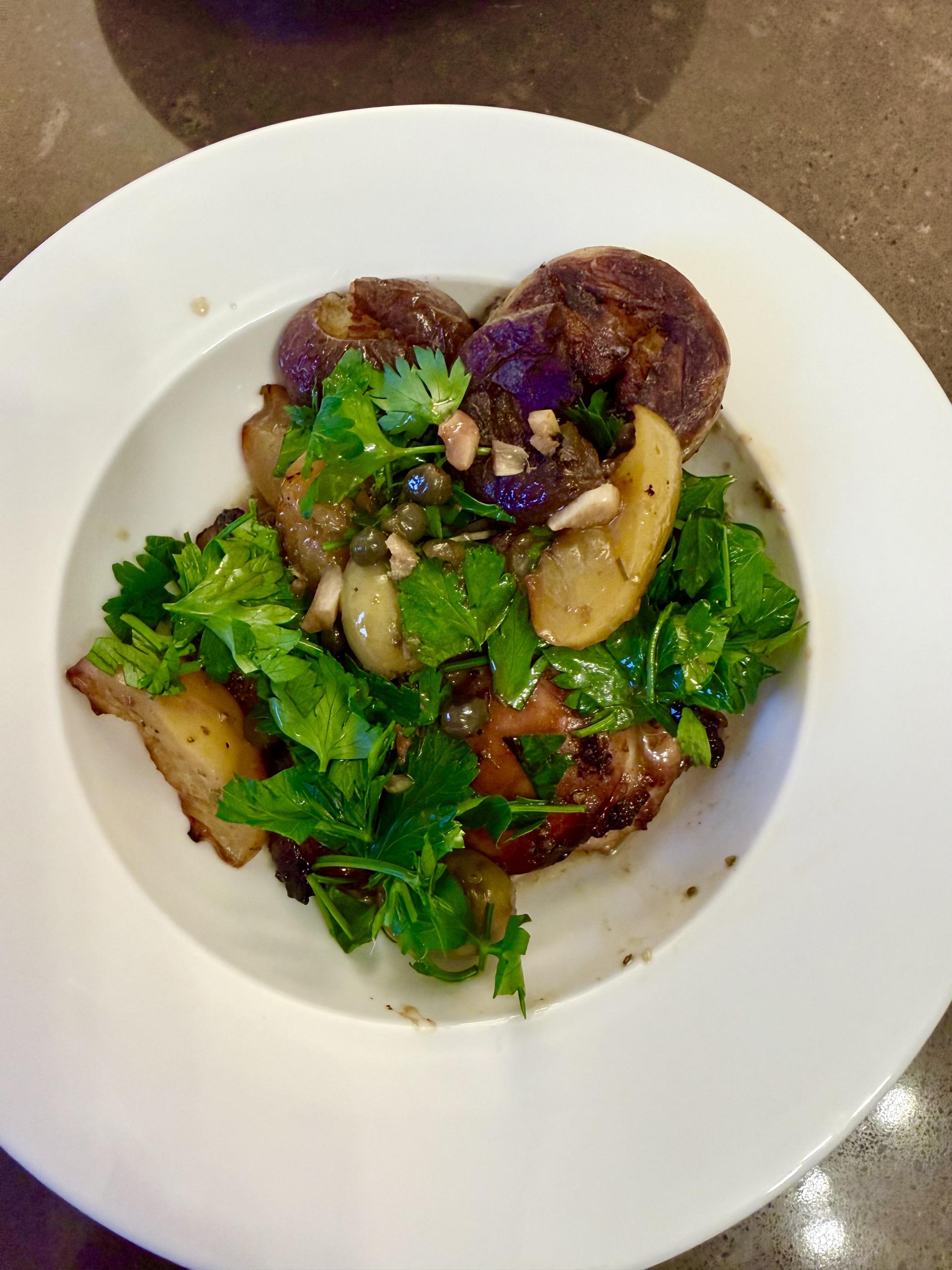 This is the chicken Marbella I made to which I added sliced peaches which really went well with the flavours of this dish.  A bit heavy handed with the parsley perhaps 😉