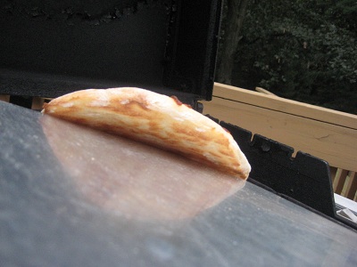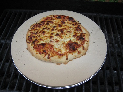 After I read this post, I started wondering about trying the stone on the grill. My grill is too small for my rectangular stone so I bought a 13 inch thinner stone at Target ($14). I have read that the stone gets too hot so I thought I would put some air space under it. To this end, I bought a 12" aluminum foil pizza pan (3 for $2). I had a small round cooling rack to elevate the stone over the pan. It seemed to work really well. The pizza was great. The only problem I had was the stone not being hot enough if I had just taken one pizza off and put another on right away. If I waited 10 minutes then they came out perfectly. This really draws out dinner since I need to make 5 to feed everyone. Next time I will try removing the cooling rack and just letting the stone basically crush the foil pan. I would be counting on the reflectivity of the foil to keep the stone from overheating since there would be no air space. It just might work. I may also try putting the cheese on after the pizza has half cooked to keep it from browning so much. Here are the pics. The last one is showing the bottom of the pizza. This one was perfect because I let the stone heat back up for 10 minutes between pizzas. The others were soft on the bottom. Any other suggestions? Btw, the dough recipe is Reinhart's Neopolitan pizza dough from "Artisan Breads Everyday". I highly recommend it. I want to try bread on the grill once I get the pizza figured out. Hope this spurs some conversation and ideas.