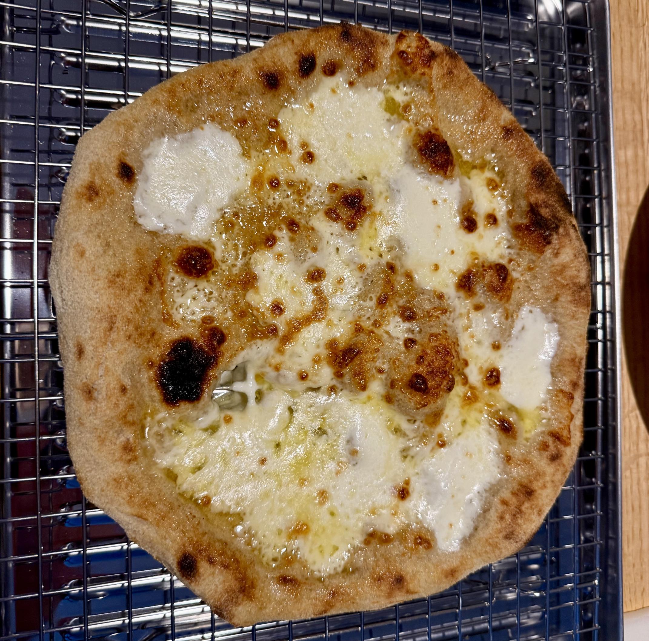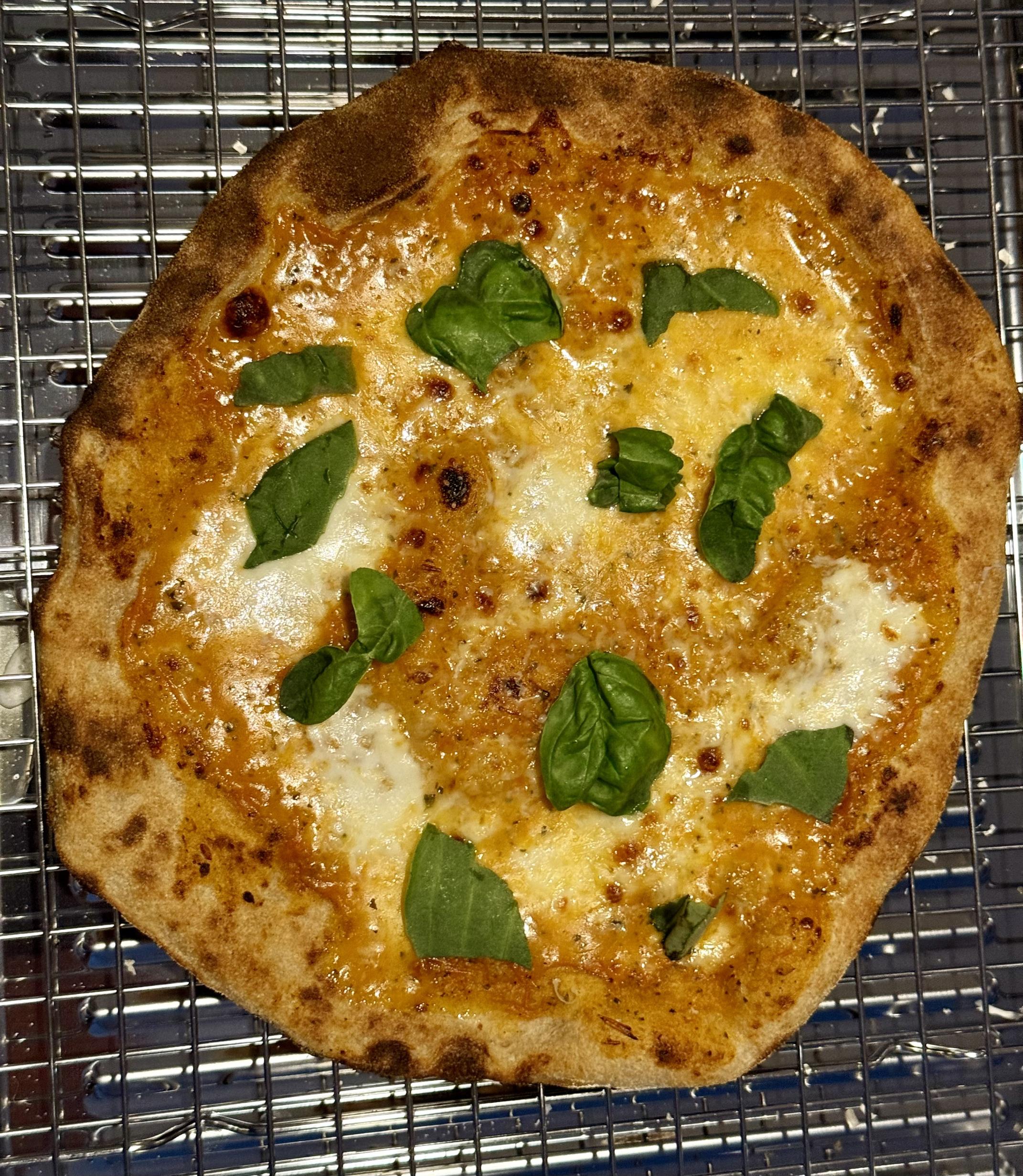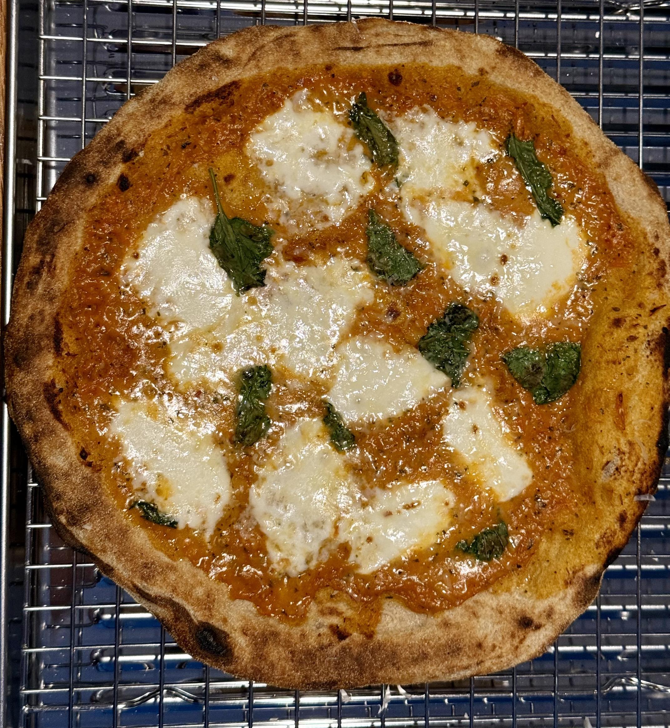 Time got away from me, so the dough ended up over proofing. That said, the pizzas still tasted good. My wife even had some leftovers the next day!
