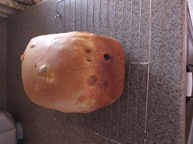 I made raisin bread in my old Oster 5838-33, just because Yippee has been doing a fair bit of basic Zo baking this week. This machine--at one time, I had three--consistently turns out nice bread. Recipe came from chatbot, with request for 1-1/2lb loaf and all-milk. Recipe was nothing special. Top crust setting was medium.