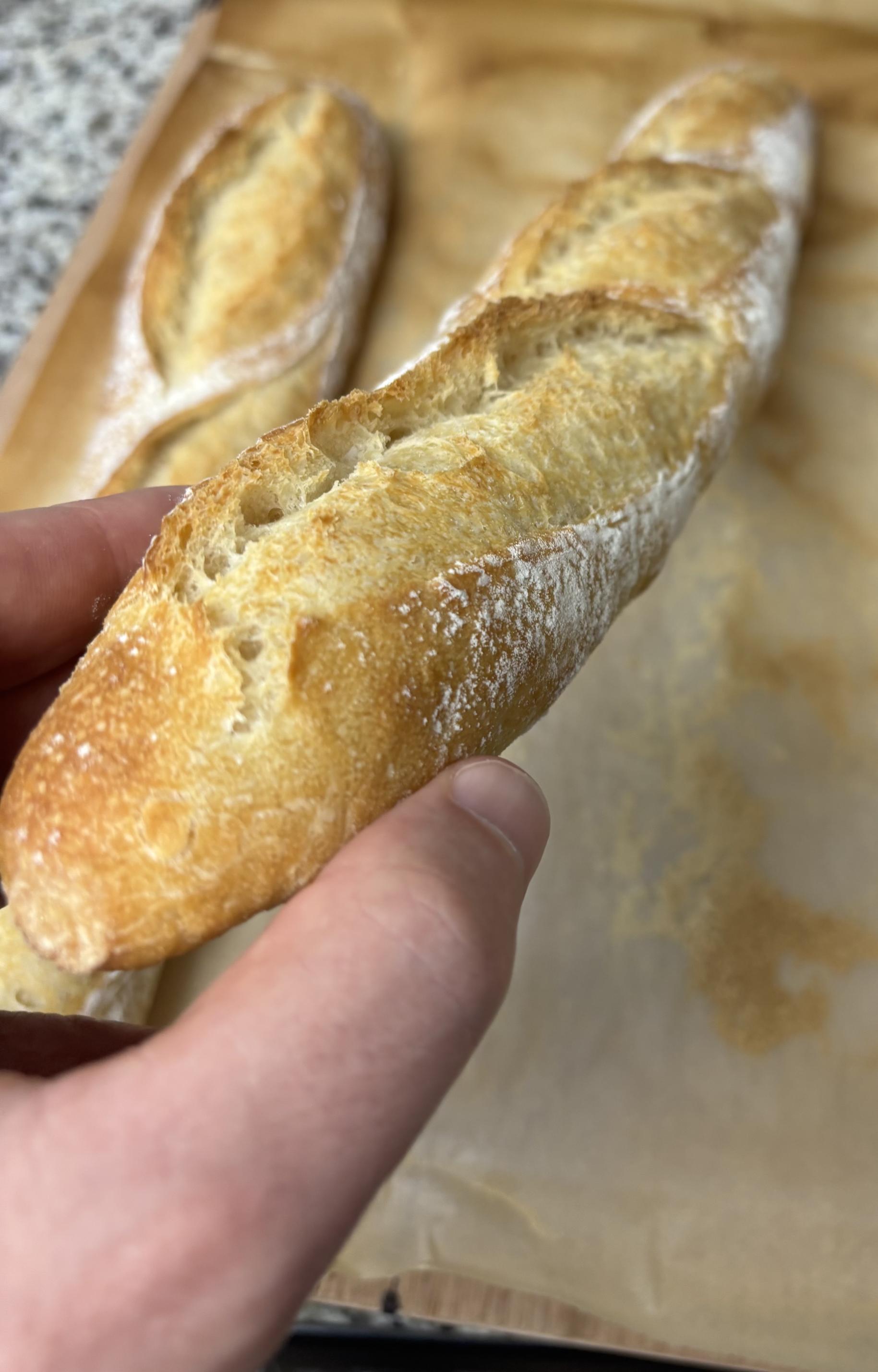 So I lowered ADY to 0.7%, reduced hydration to 65%, placed a sauce pan on each side of my baking plate, and tried to be conscientious of surface tension while forming. And I also tried to use the above poke test tutorial.