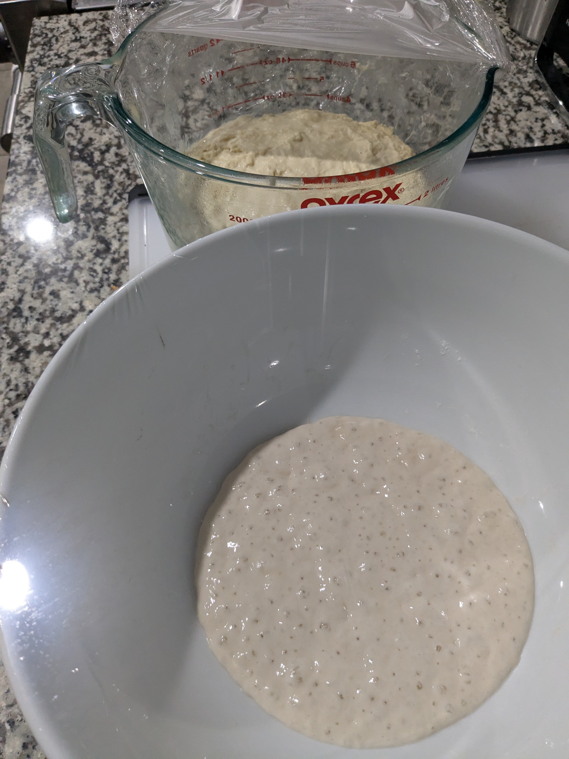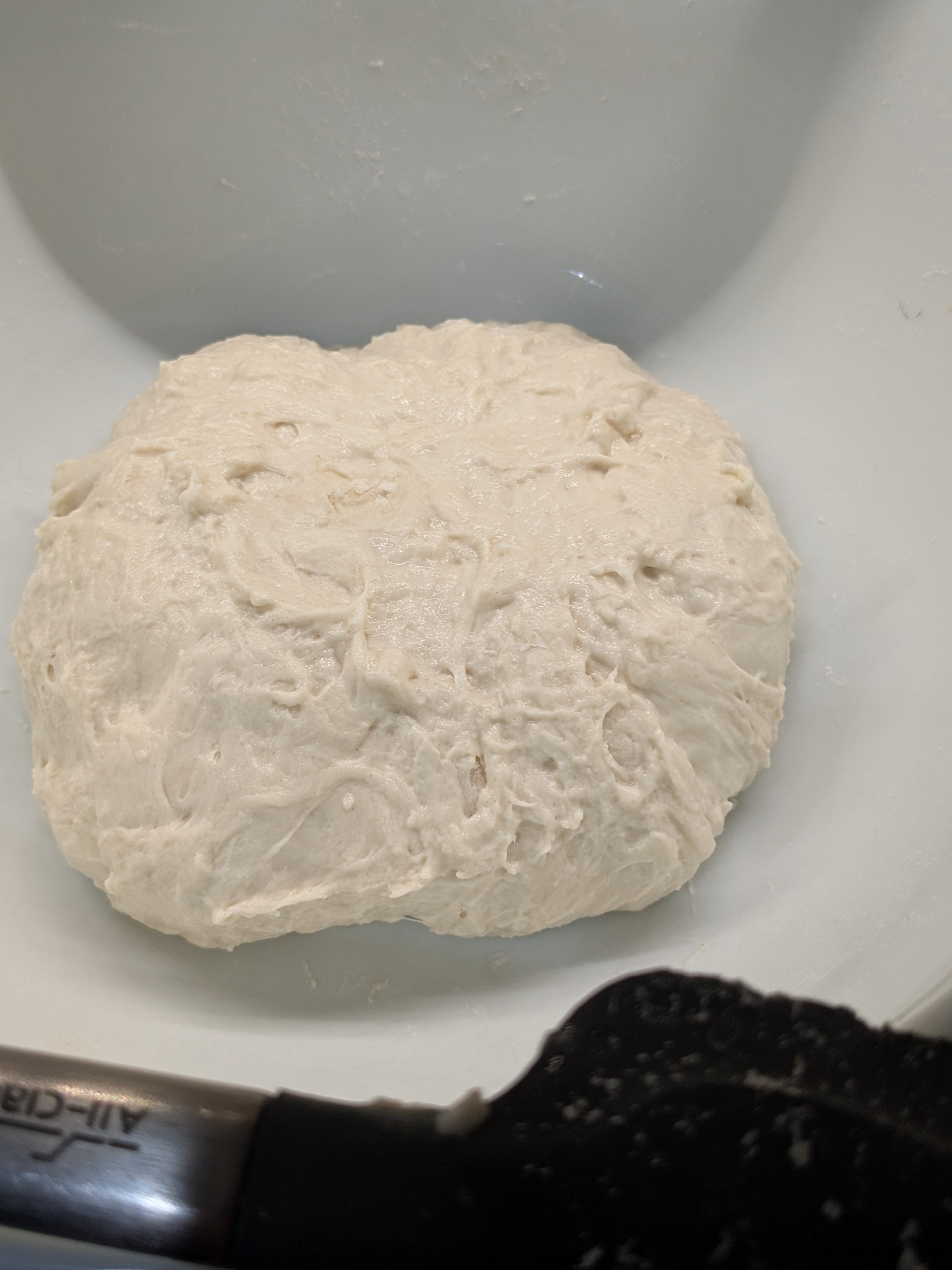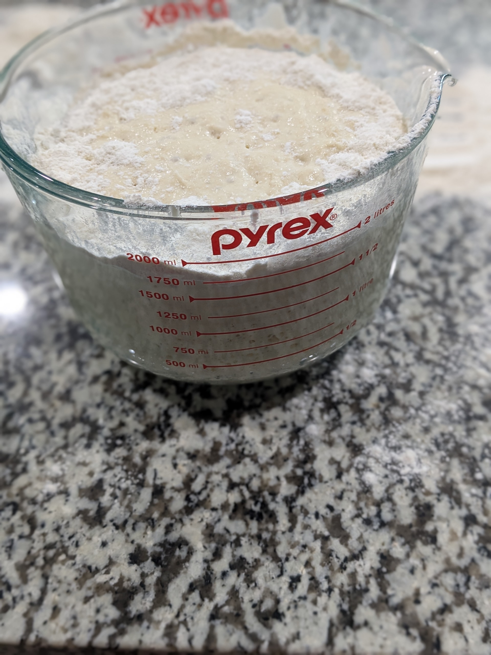The no knead 90% hydration ( for all intents and purposes) dough has just about doubled.