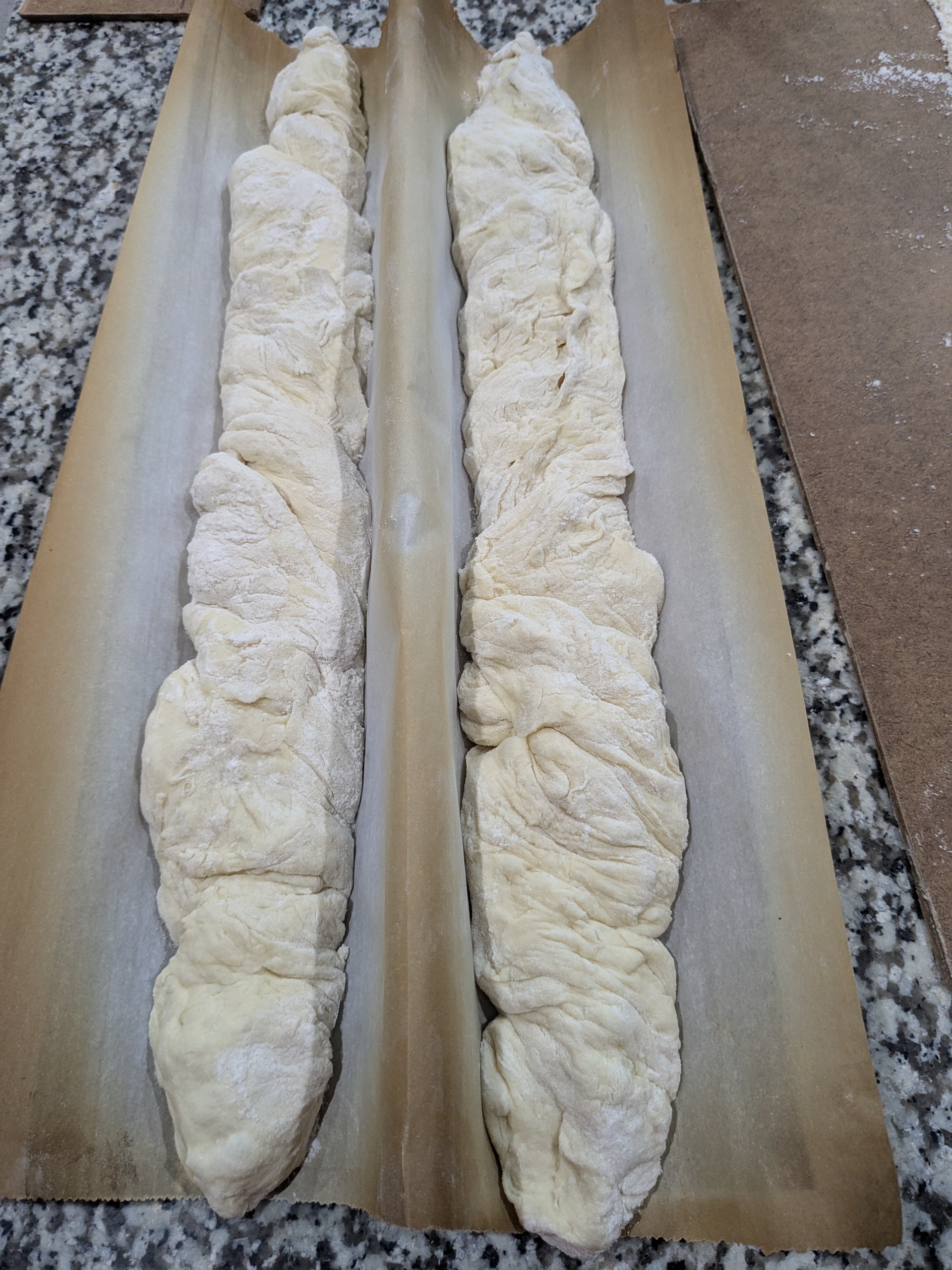 The low hydration Parisian baguette dough.is looking much
