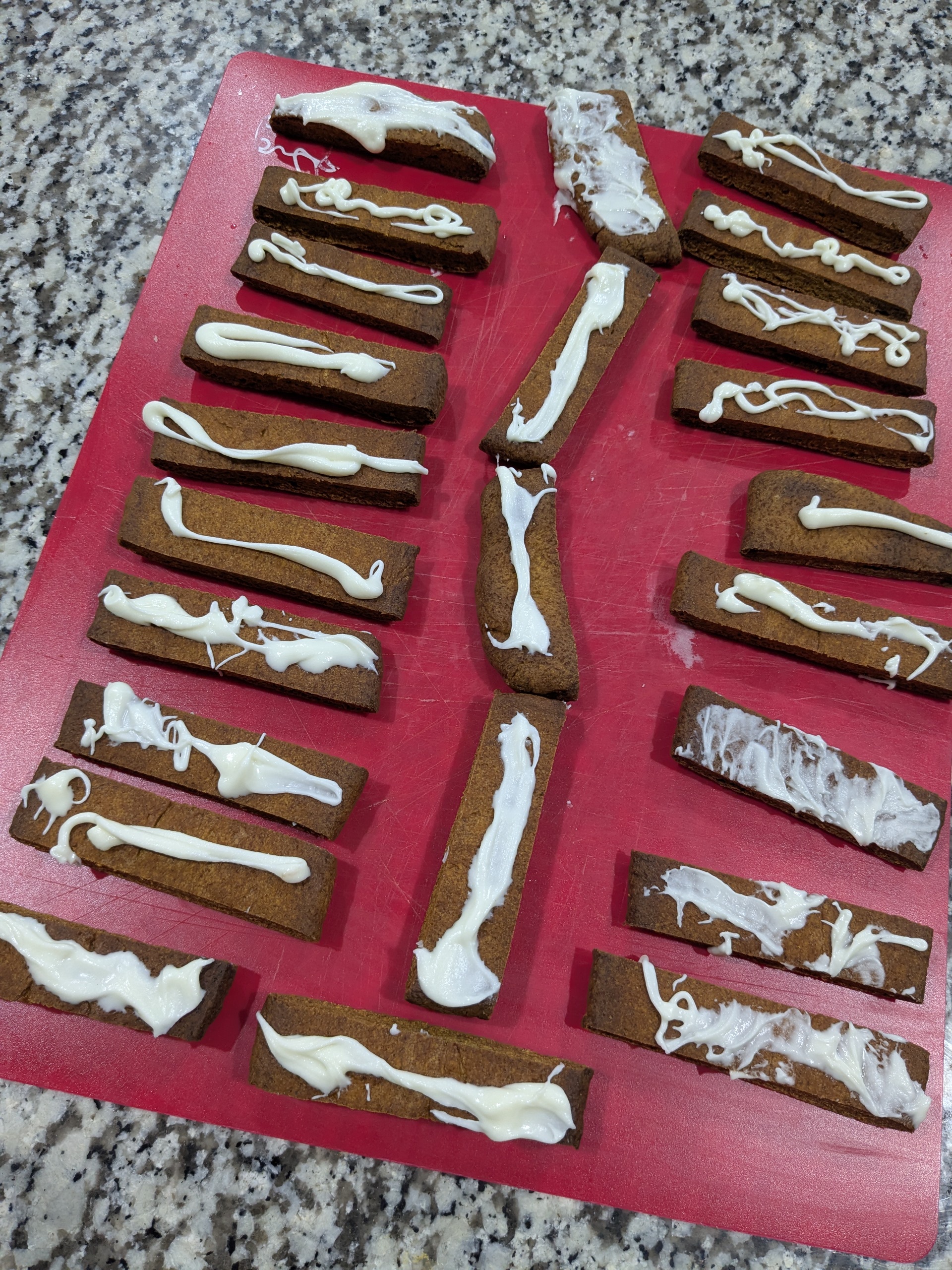 The makeshift sandwich/piping bag burst. Making my already poor piping worse!