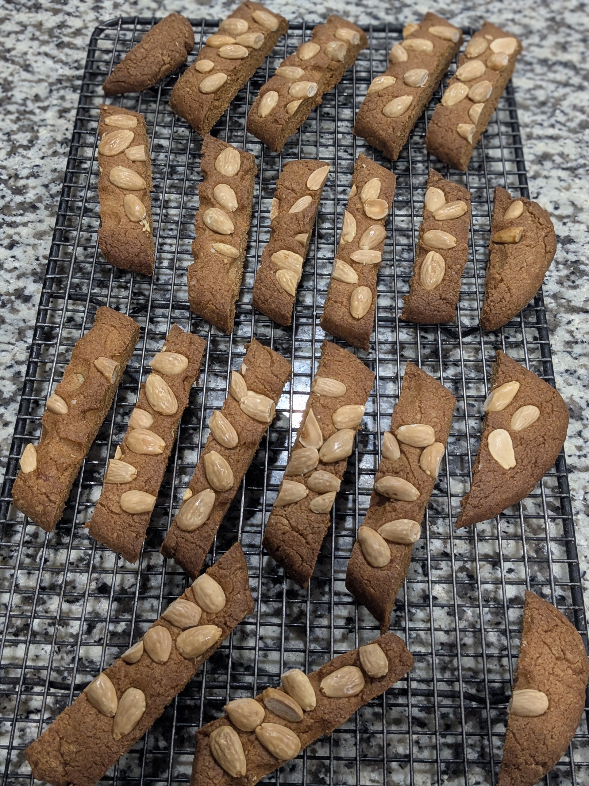 I forgot to fold the almonds into the dough. I just pressed them in after the shaping. It worked okay.