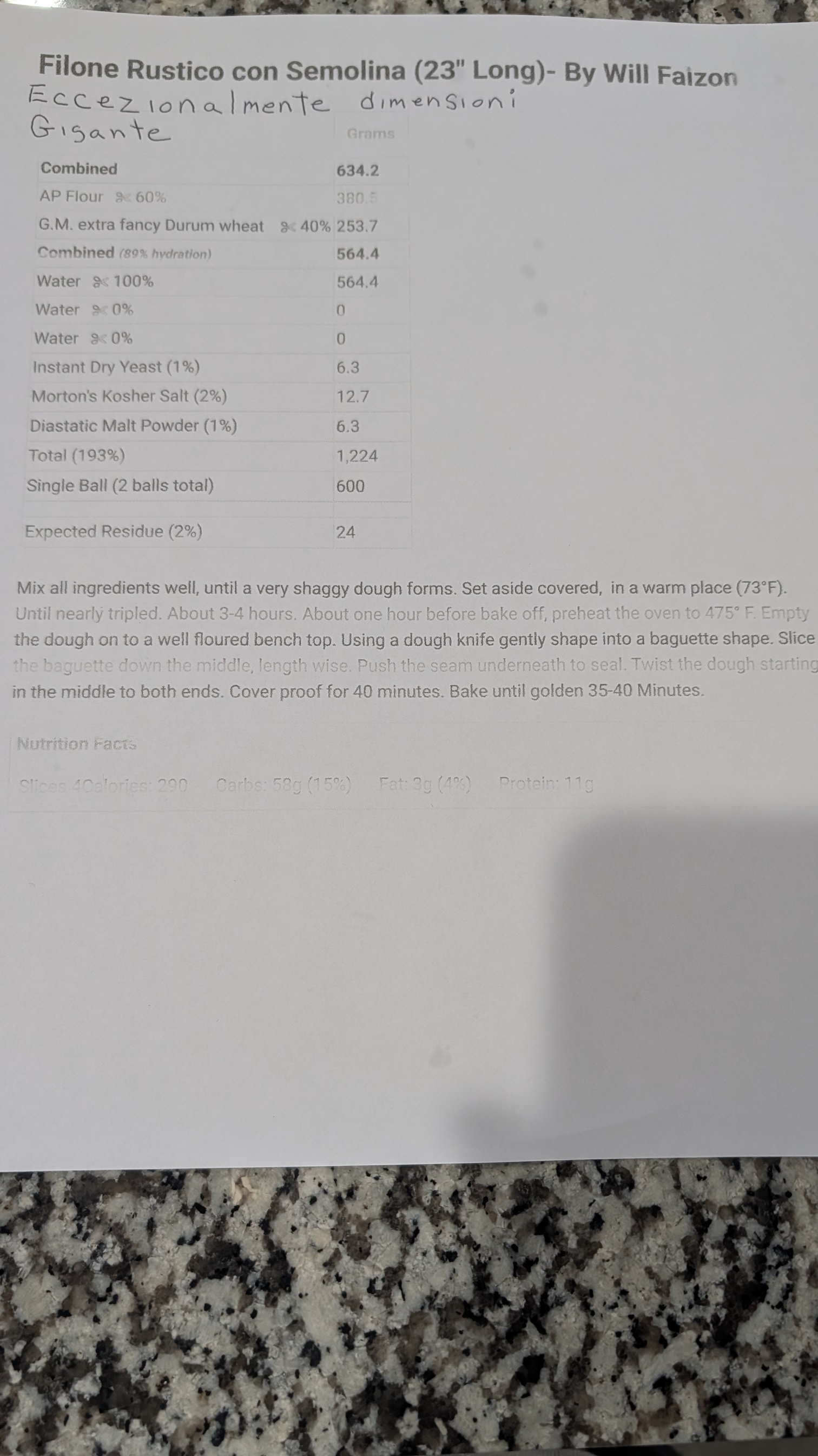 Gigante, Filone Rustico con Semolina. il metodo di Will Falzon.
