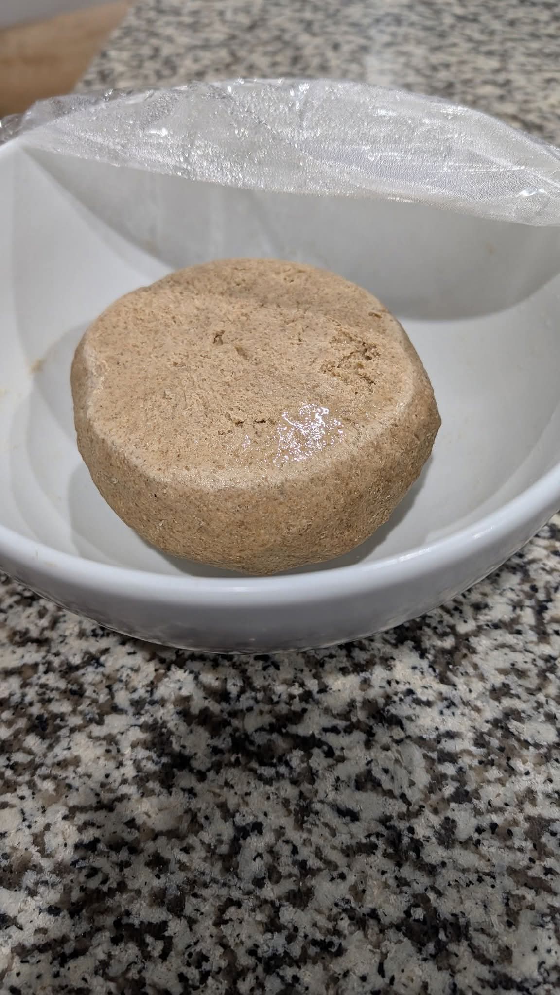 The low hydration dough has expanded nicely overnight, during the cold retard/fermentation. That being said the 50% dark Rye Flour dough is very stiff. I believe Warming the dough at room temperature will be necessary.