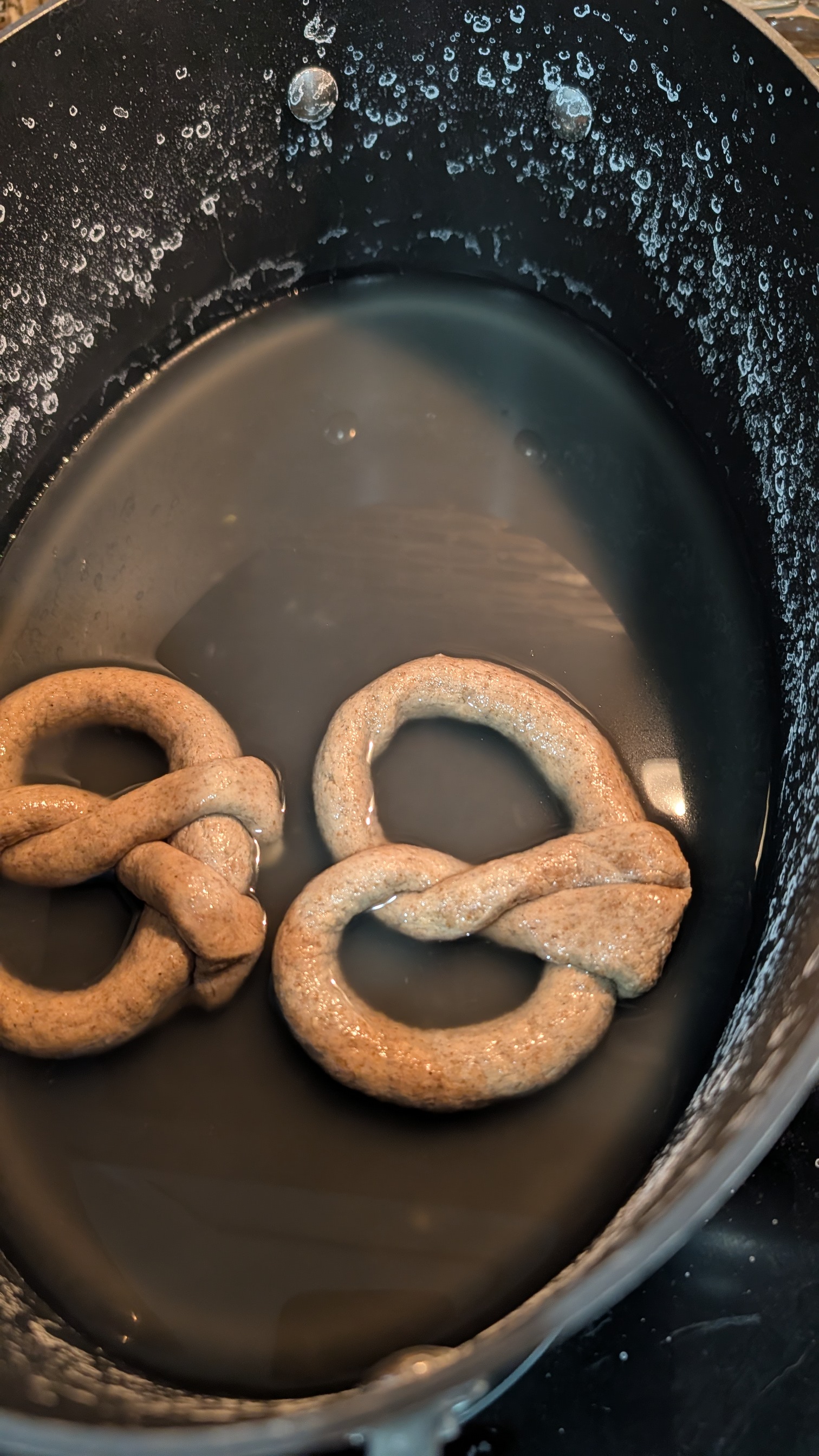 I am thrilled with the results of this bake. I plan on starting another batch tonight. That will be made into rolls. Eight pieces rather than Ten. My question is, do you water bath your pretzel rolls? Any tips on doing so?