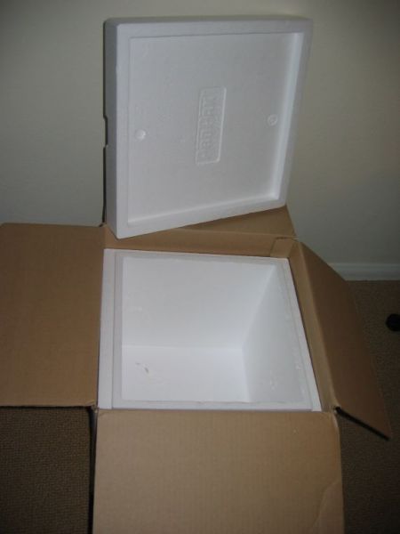 This might work? and it was free...small 13X13X13D....A Christmas ham was shipped to me yesturday in this cardboard box/styrofoam box? I don't use a proofing box...I usually just use my oven or microwave oven with added humidity!...might be a good idea to save this just in case I decide to make one...do you think it's big enough?